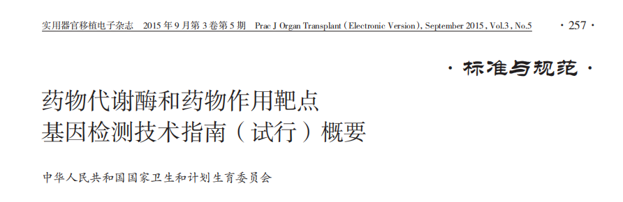 [1] 國家衛健委.藥物代謝酶和藥物作用靶點基因檢測技術指南(試行).2015